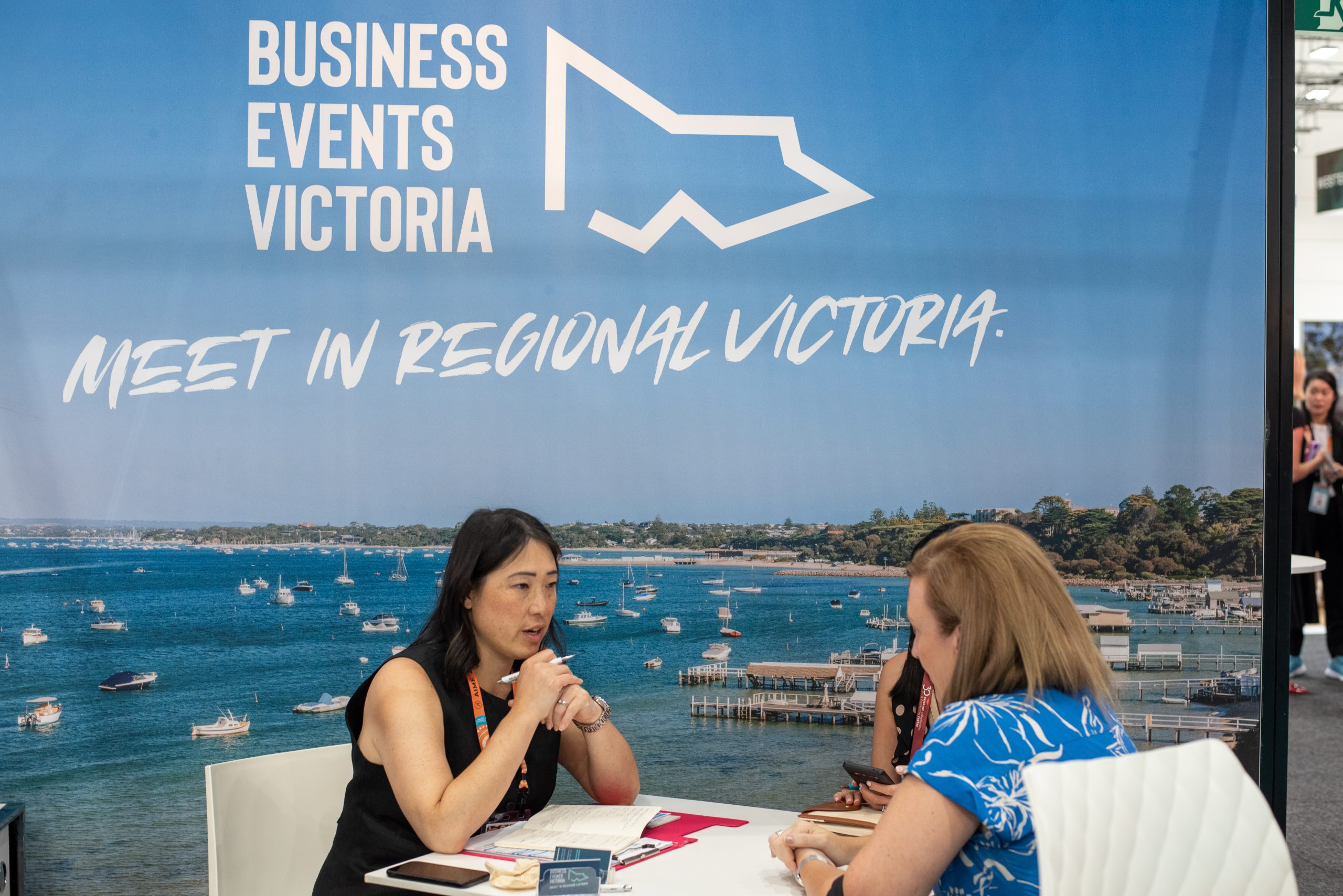 BEV was joined on the stand by an impressive line-up of members and partners: Business Events Ballarat, Sovereign Hill, Atlantic Group (The Goods Shed), Yarra Valley MICE (Zoos Victoria, Rochford Wines & Rayner’s Orchard), Holiday Inn Werribee, and Mantra Lorne. Having these venues present allowed buyers to connect directly with the people and places that make events in regional Victoria so memorable.